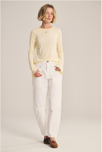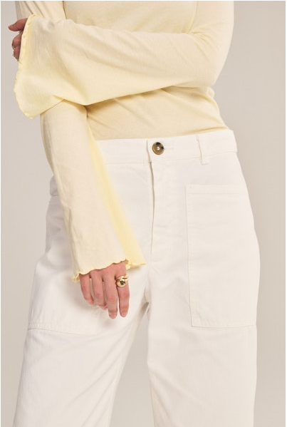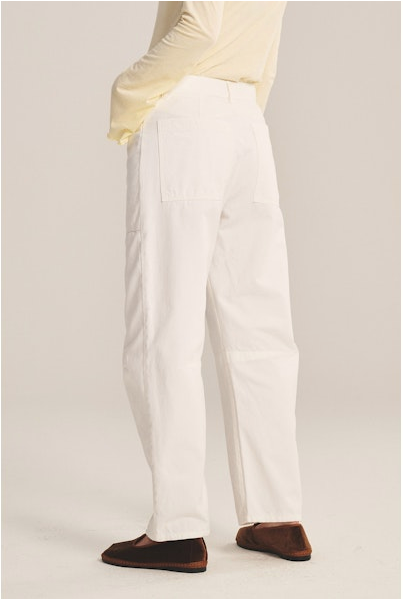 Crafted from a sturdy cotton twill, this casual trouser has a modern line with a subtle, vertical seam at the knee that lends a cool curved silhouette. Utilitarian-inspired patch pockets on the front and rear.