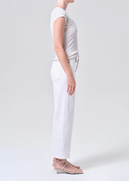 The Harper Crop Jean delivers effortless sophistication with a modern, relaxed shape. Designed in a milky white wash, it features a mid-rise waist, a flattering square top block, and a straight yet subtly wide leg for a timeless, versatile silhouette. Crafted from comfort stretch signature archive regenerative cotton denim with a super soft hand feel, it holds its shape while offering all day comfort and ease.
