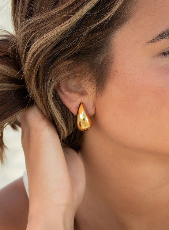 drop studs are the most beautiful reflective gold and versatile ~ perfect for any occasion or outfit. The absolute best part is they are so  lightweight and smaller than the typical pair, you barely notice them in your ear, these drops are going to be your new favorite accessory.