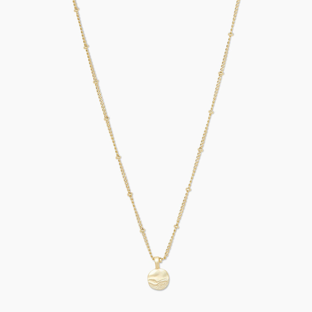 Inspired by the coastal roots in Laguna Beach, this necklace is the perfect way to always keep a piece of sun-kissed California with you. With its sandy shoreline elements, this delicate coin necklace embodies the summer shore.