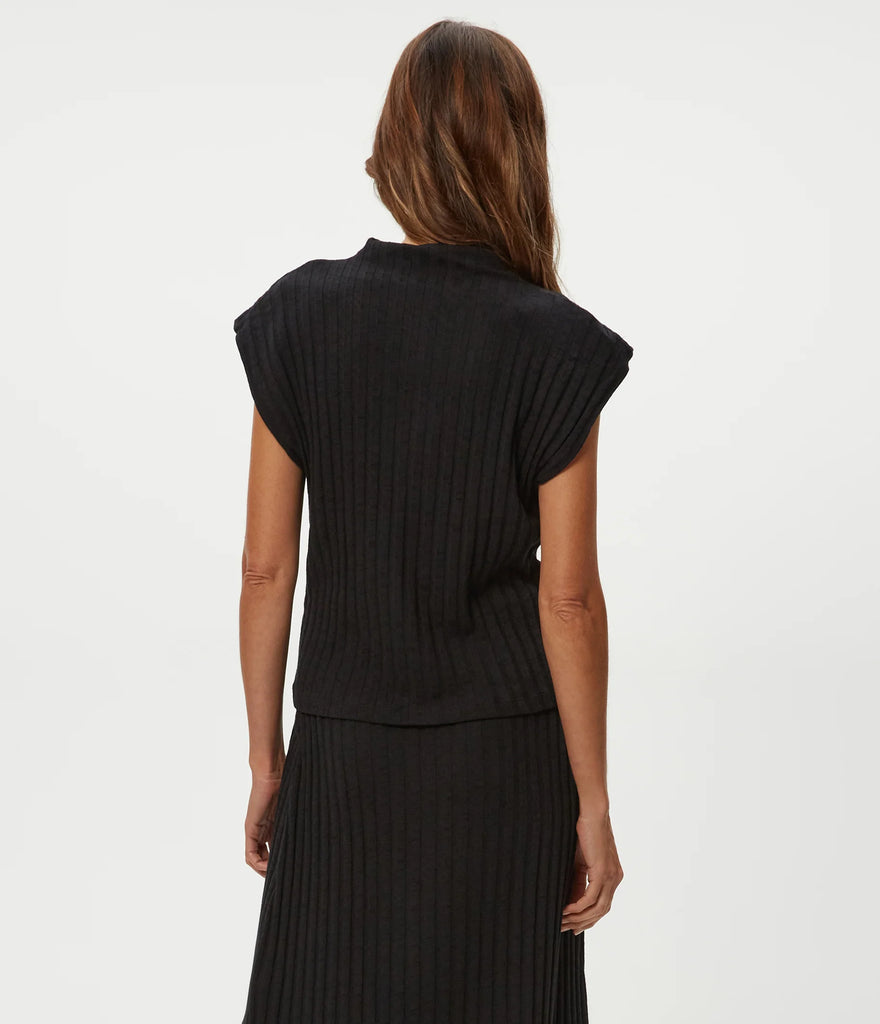The perfect day to-night piece, this chic top is crafted with a soft power shoulder and mock neckline. Designed with a roomier fit, it's made from our soft London Rib fabric that washes well and keeps its shape throughout wear. Wear yours with a midi skirt or pants.