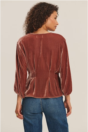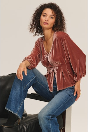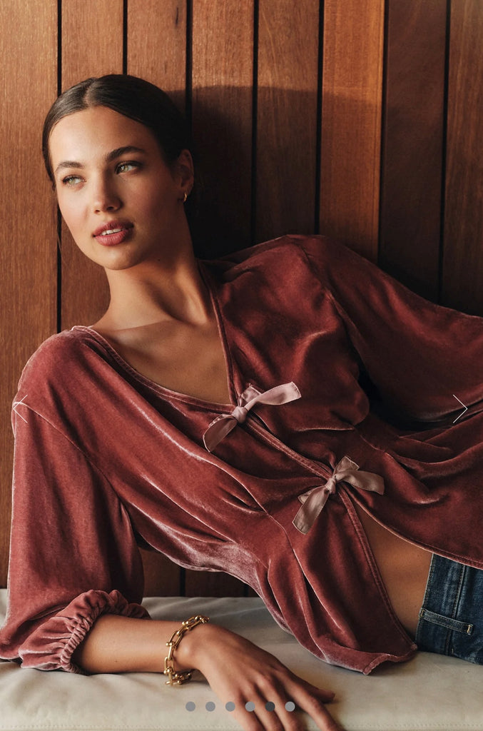 Velvet top in Rosefold with satin bows 82% Viscose, 18% Silk