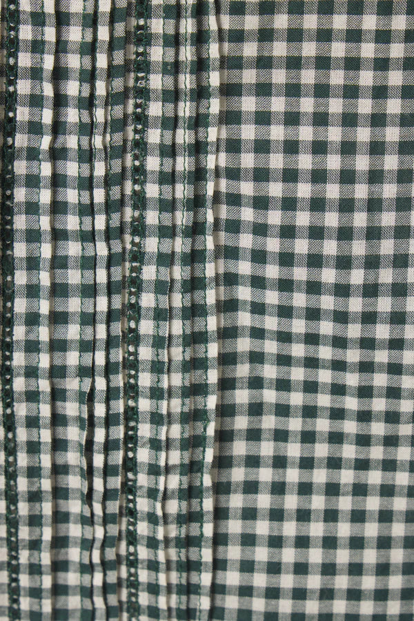The Alise Blouse features variegated pintucking that delicately borders a front buttoned placket. Additional pintucks encircling the neck release into a gently ruffled bib collar, perfect for layering with a light sweater. Whether paired with tailored trousers for a professional setting or dressed down with jeans for a casual look, this blouse exudes personality and timeless elegance. Shown here in Caspian Check and made from our cotton voile.
